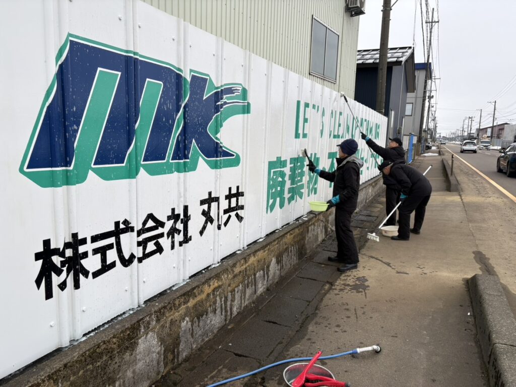 大雪だったせいか丸共の看板もかなり汚れており、先日水洗いをしました。